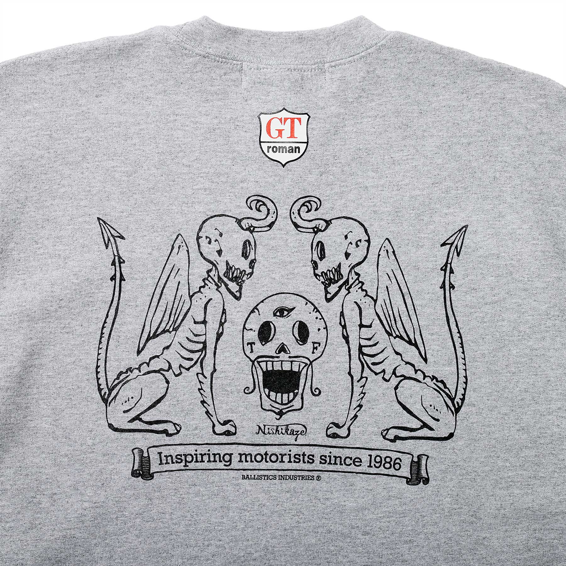 シンプルなフロントプリントとインパクトのあるバックプリントの対比が特徴です。